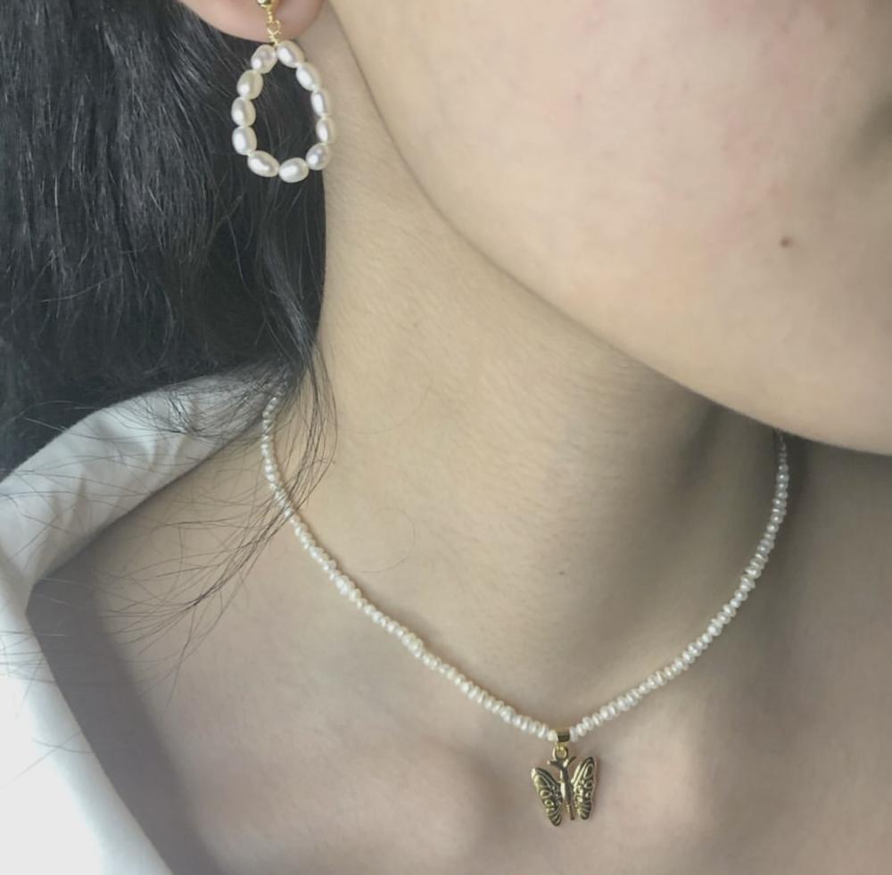 سلسال فضة عيار 925 مطلي ذهب مزين بالؤلؤ الصناعي.